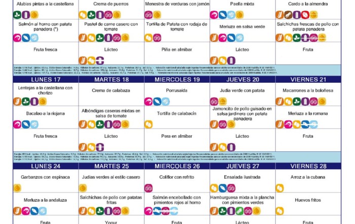 Buenos días, Os dejamos el menú del mes de Octubre: Recomendaciones e información sobre el aporte nutricional de los menús