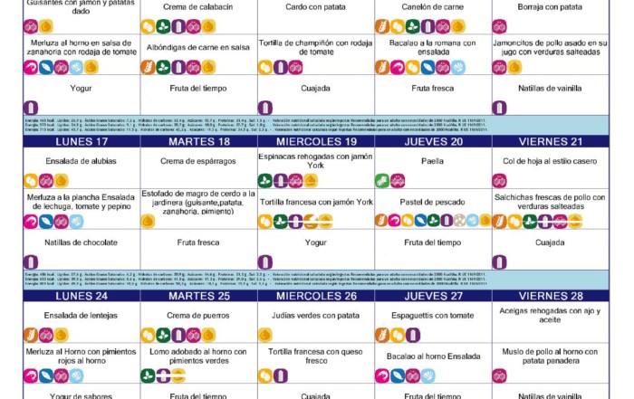 Buenos días, Os dejamos el menú del mes de Octubre: Recomendaciones e información sobre el aporte nutricional de los menús