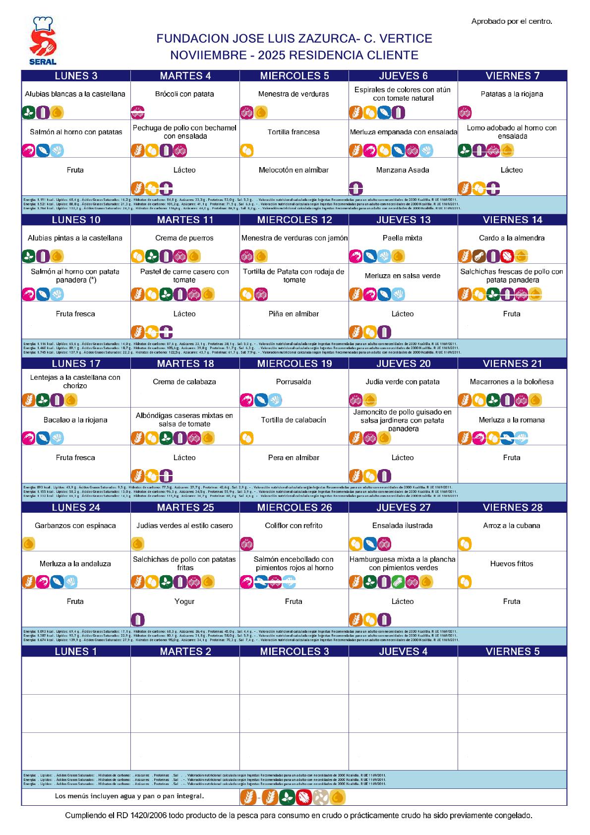 Buenas tardes, os dejamos el menú del mes de Enero: